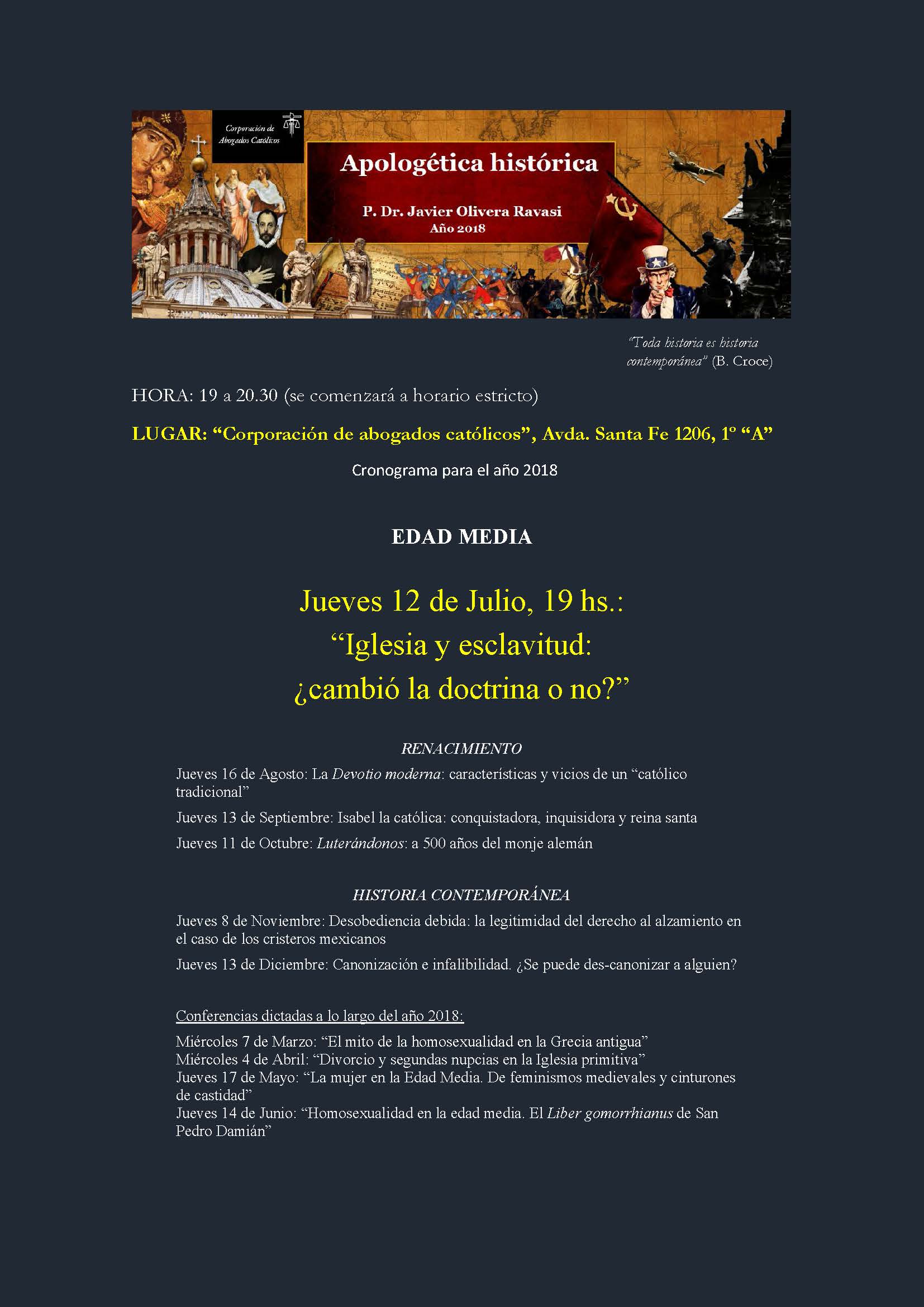 Invitación al Curso de “Apologética histórica” en la Corporación de Abogados Católicos de la Ciudad de Buenos Aires,a cargo del P. Javier Olivera Ravasi.