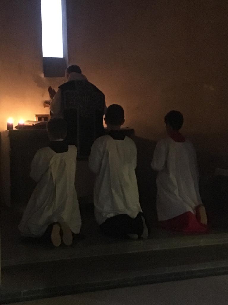 El sábado -como todos los sábados por la tarde- una quincena de niños vienen a “monaguillado”: se reza un poco, juegan al fútbol, les damos una pequeña charla y a veces hasta cantamos las vísperas. Después, la Santa Misa con toda la solemnidad que podemos.