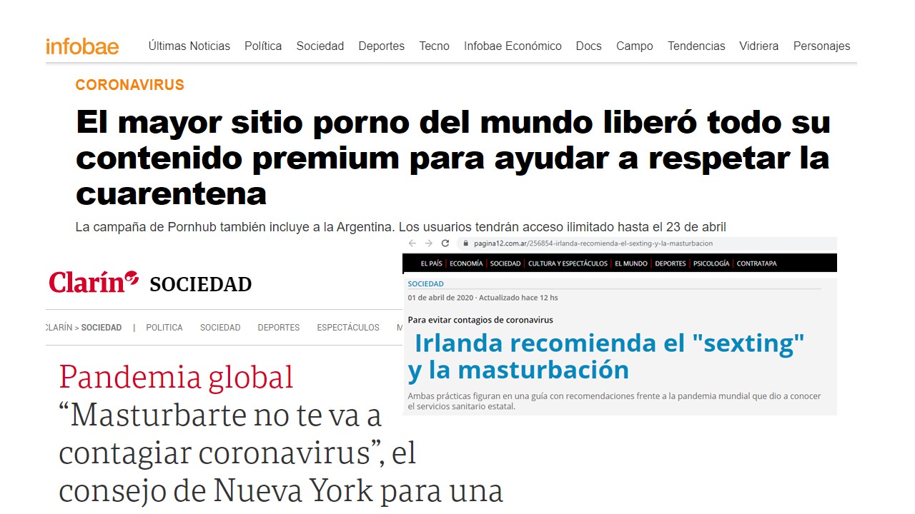 Y si no, basta con abrir los diarios de los últimos días para que, además de enterarse cuántos muertos hubo en Burundi (país africano que probablemente ud. jamás visitará) se nos intente llevar a un nivel de dopamina gratuito para que el “quédate en casa” sea más llevadero…